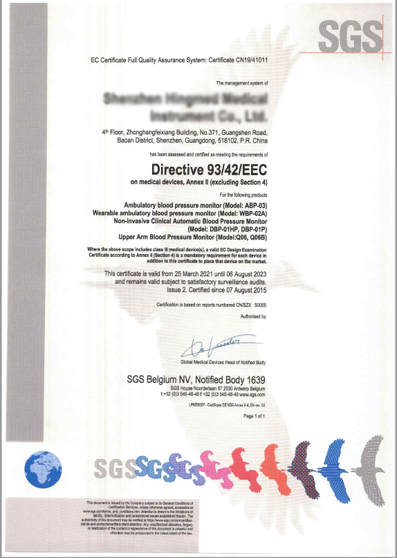 • Automatic BP level reminding on each reading upon hypertension standard of WHO;