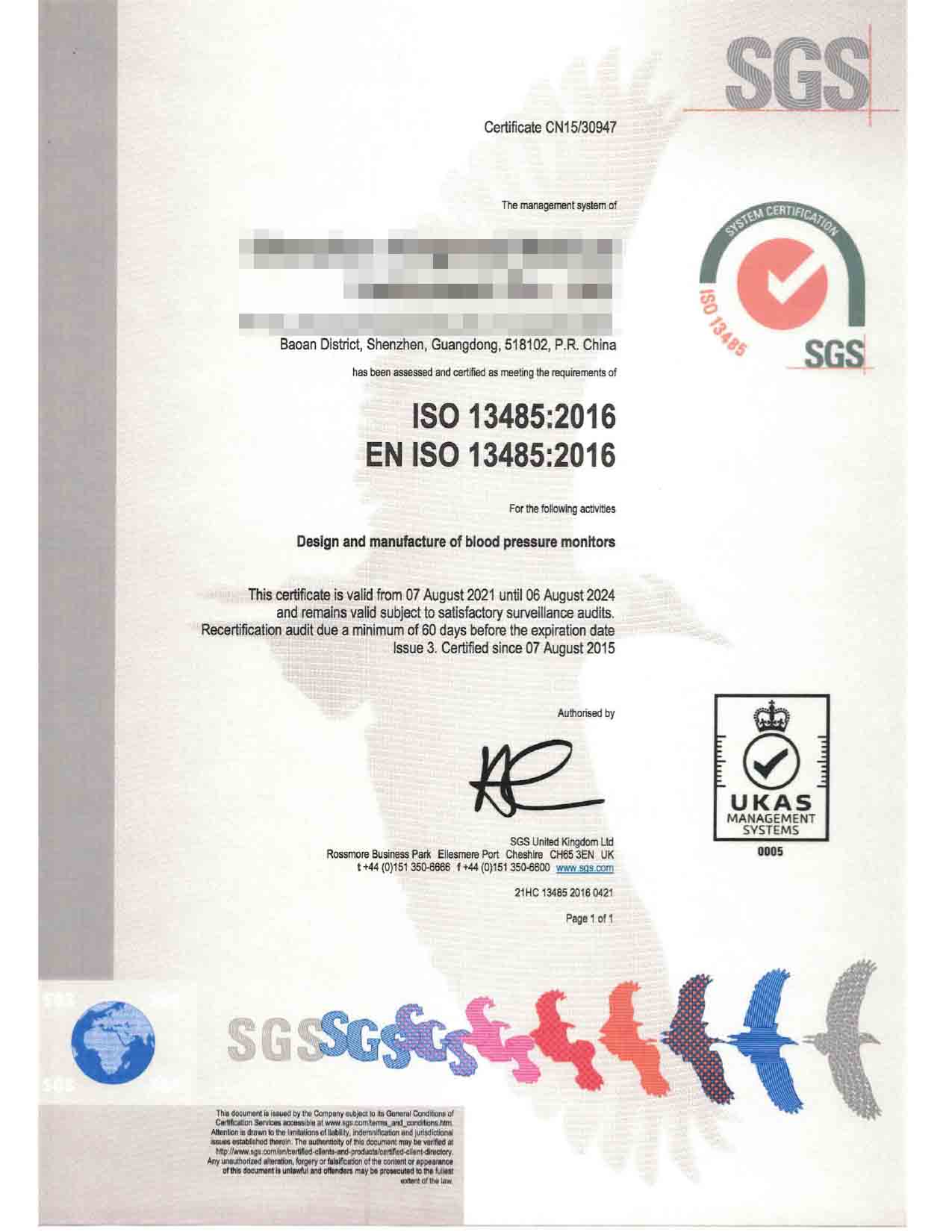 | Safety | Max inflation pressure290mmHg; Valve opens for deflation automatically upon power shutting off; Max measurement circle 120s. |